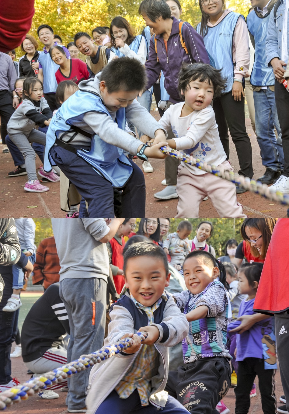 大人們的拔河比賽結束,圍觀的小朋友們也躍躍欲試,他們組成兩隊,玩起了“mini版拔河”,那可愛模樣,真叫人歡喜!