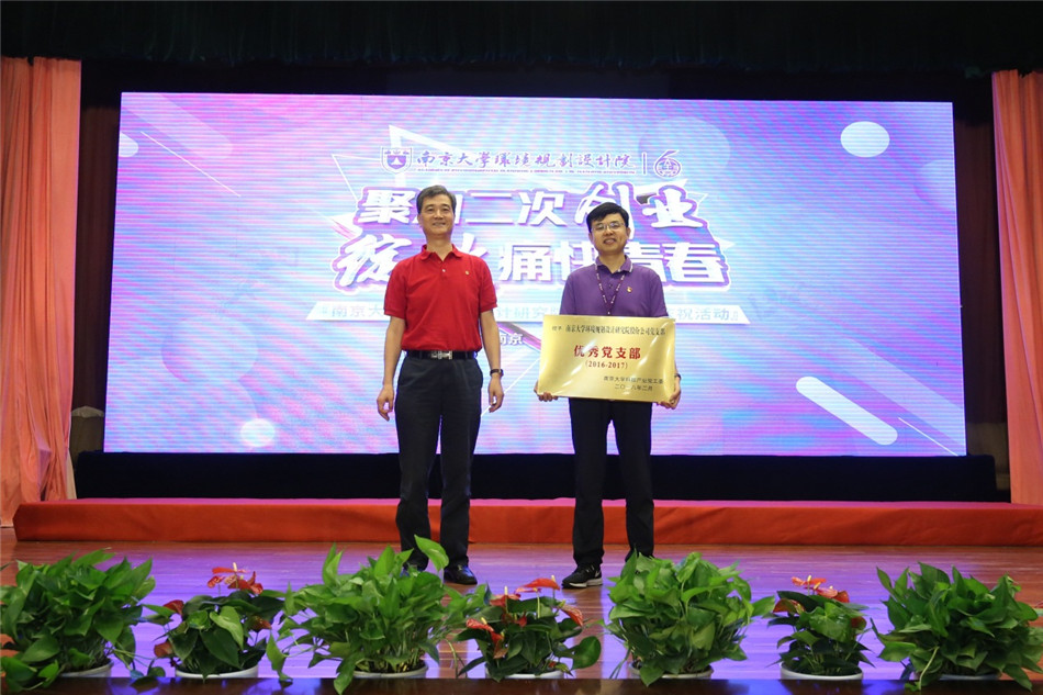 慶典的第二篇章由詩朗誦《紅船,從南湖起航》拉開序幕。首先由南京大學科技產業黨委陸江兵書記為我院支部頒發“南京大學科技產業黨委2016-2017年度優秀黨支部”獎牌;接著,進行了支部委員換屆和支部旗交接儀式。最后,南京大學馬克思主義學院黨委書記王建華教授為大家講授了《在挫折中成長——中國革命與中國共產黨》。