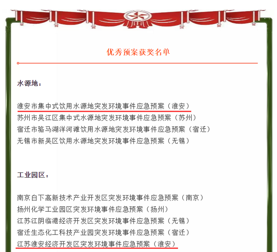 近日,江蘇省環(huán)境應(yīng)急與事故調(diào)查中心聯(lián)合江蘇省生態(tài)文明研究與促進(jìn)會(huì)在全省開(kāi)展了“江蘇省優(yōu)秀突發(fā)環(huán)境事件應(yīng)急預(yù)案遴選”活動(dòng),我院參評(píng)的《淮安市集中式飲用水源地突發(fā)環(huán)境事件應(yīng)急預(yù)案》、《江蘇淮安經(jīng)濟(jì)開(kāi)發(fā)區(qū)突發(fā)環(huán)境事件應(yīng)急預(yù)案》獲得了優(yōu)秀預(yù)案獎(jiǎng),其中《淮安市集中式飲用水源地突發(fā)環(huán)境事件應(yīng)急預(yù)案》的專家評(píng)分排名第一,排名結(jié)果在江蘇生態(tài)文明網(wǎng)、江蘇生態(tài)文明微信公眾號(hào)和《江蘇環(huán)境》等刊登。