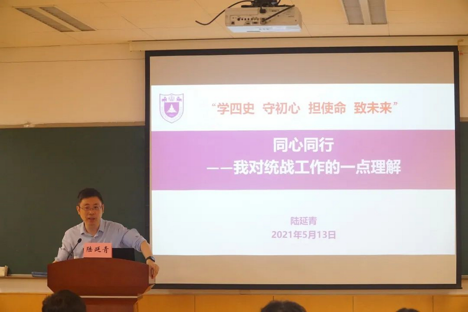 陸延青副校長以習近平總書記關于《深刻認識做好新形勢下統戰工作的重大意義》的重要講話為切入點,介紹了統戰工作的發展史、重要性、在我國發展中的積極作用以及南京大學統一戰線的基本情況,陸校長結合習近平總書記給復旦大學《共產黨宣言》展示館黨員志愿服務隊全體隊員的回信內容,用“心有所信,方能行遠”為青年黨員指明了前行方向。