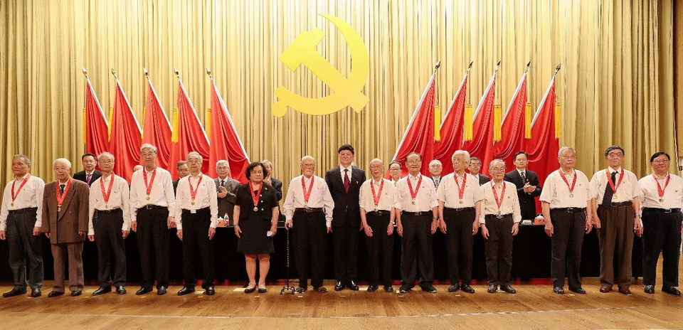 南京大學黨委書記胡金波頒發“光榮在黨50年”紀念章