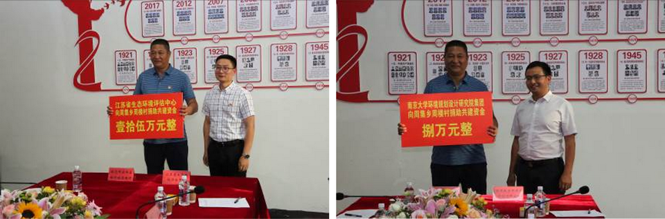 在沭陽縣周樓村,省生態環境評估中心、南大環規院集團分別與周樓村簽訂了《“城鄉結對、文明共建”補充協議》和《“提升泵站”技術幫扶協議》,為周樓村建設社區污水一體化提升泵站提供經費和技術支持。