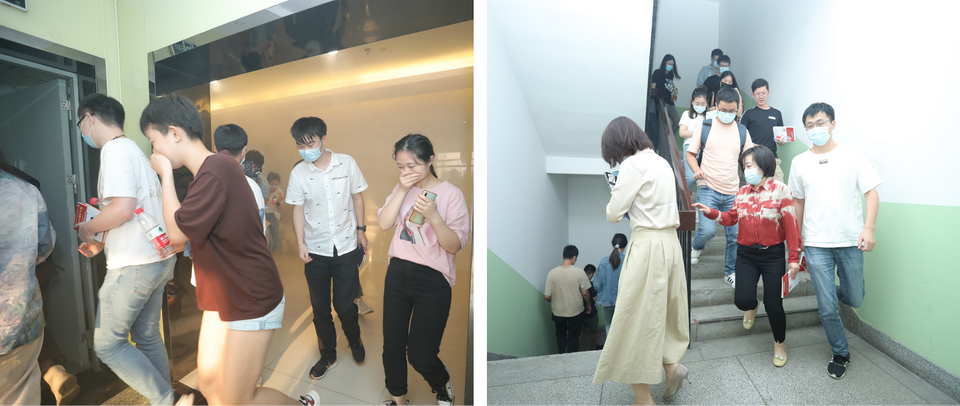 隨著消防警報和發(fā)煙裝置的開啟,應急疏散拉開序幕,員工們彎腰掩口鼻,服從指揮,有序疏散到安全區(qū)域。