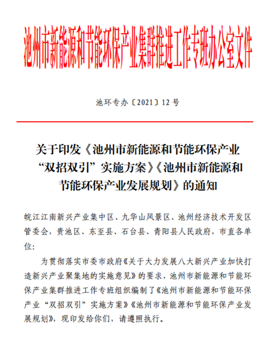 安徽省池州市“新能源和節能環保產業”繪就發展路線圖