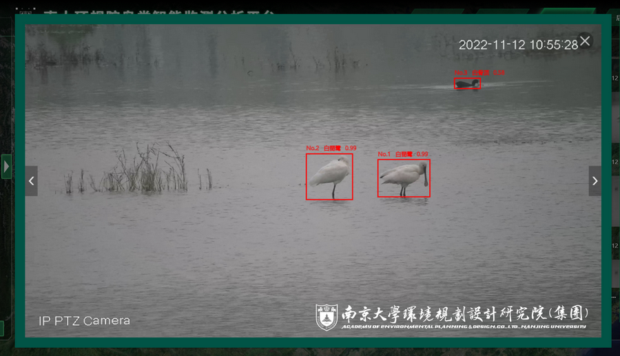 本次抓拍并識別到白琵鷺的南大環規院鳥類智能監測系統為南大環規院牽頭自主設計、聯合國內人工智能領域排名第一的高校——南京大學共同研發的系列人工智能生態監測產品之一。系統基于視頻檢測及識別等行業領先的人工智能技術,主攻濕地水鳥識別監測與數據統計分析,基于南大環規院長期在我國長三角地區開展生物多樣性調查工作積累的鳥類圖片數據庫進行系統識別準確性訓練,水鳥識別準確率高、計數精確、珍稀瀕危物種識別后可自動上報提示。此外,系統有著強大的物聯及拓展能力,能夠便捷的與各類視頻監控系統相融合,極大的節省人力監測成本和系統建設成本。在當前全省掀起開展生物多樣性觀測網絡建設大潮的進程中,人工智能生態監測系統必將成為輔助人力監測的利器,南大環規院也將致力于研發更多的人工智能生態監測產品,助力全省生物多樣性觀測網絡更先進、更準確、更智能。
