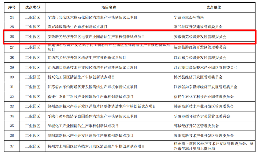 近日,生態(tài)環(huán)境部公布了第一批清潔生產(chǎn)審核創(chuàng)新試點項目名單,由南大環(huán)規(guī)院安徽分院和水生態(tài)環(huán)境研究所聯(lián)合提供技術(shù)支持的“安徽新蕪經(jīng)濟開發(fā)區(qū)電鍍產(chǎn)業(yè)園清潔生產(chǎn)審核創(chuàng)新試點項目”成功入選,成為本次公示名單中安徽省唯一的試點項目。