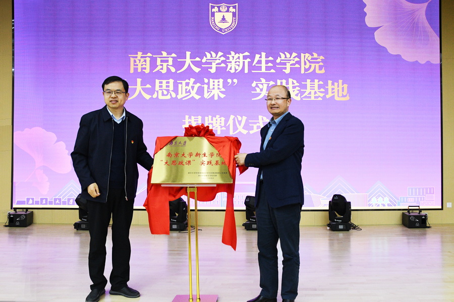 在熱烈的掌聲中,新生學院黨委書記蔣恩銘與環規院黨委書記陸朝陽共同為“南京大學新生學院‘大思政課’實踐基地”揭牌。據悉,環規院將與新生學院充分發揮黨建引領作用協同育人,推動思政小課堂與社會大課堂相結合,引導新生扣好“人生第一粒扣子”。