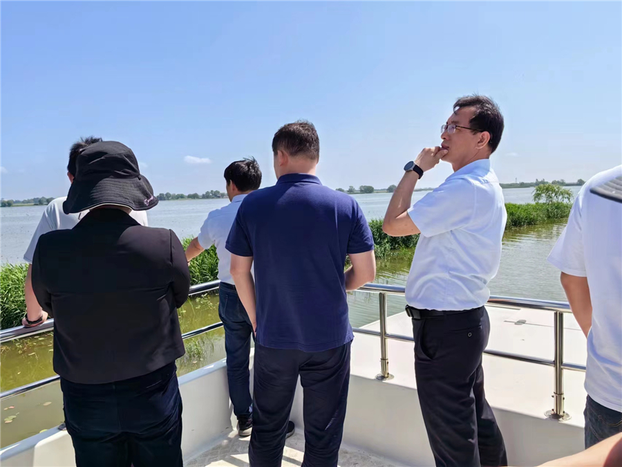 隨后,全體黨員在洪澤湖保護區工作人員的帶領下來到了洪澤湖保護區的生態修復區,這里生態修復實施方案主要由集團鴻雁團隊——生態所技術骨干編制。秉持尊重自然、順應自然、保護自然的修復理念,該工程的開展提高了保護區內濕地水系連通性,使濕地鳥類承載能力大幅度提升,濕地生態系統質量穩定提高。省林業局自然保護地管理處黨支部書記戴懷寶充分肯定保護區生態修復的成果,對保護區的進一步發展提出了針對性、建設性的意見建議。